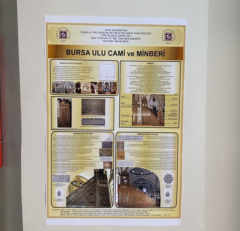 Öğrencilerimizin dönem boyunca gerçekleştirdikleri araştırmaların ürünü olan bu çalışmalar, Türk-İslam sanatında önemli bir yere sahip olan minberlerin sanatsal, tarihsel ve teknik özelliklerini ele almaktadır. Tüm öğrencilerimize emeklerinden dolayı teşekkür ederiz.